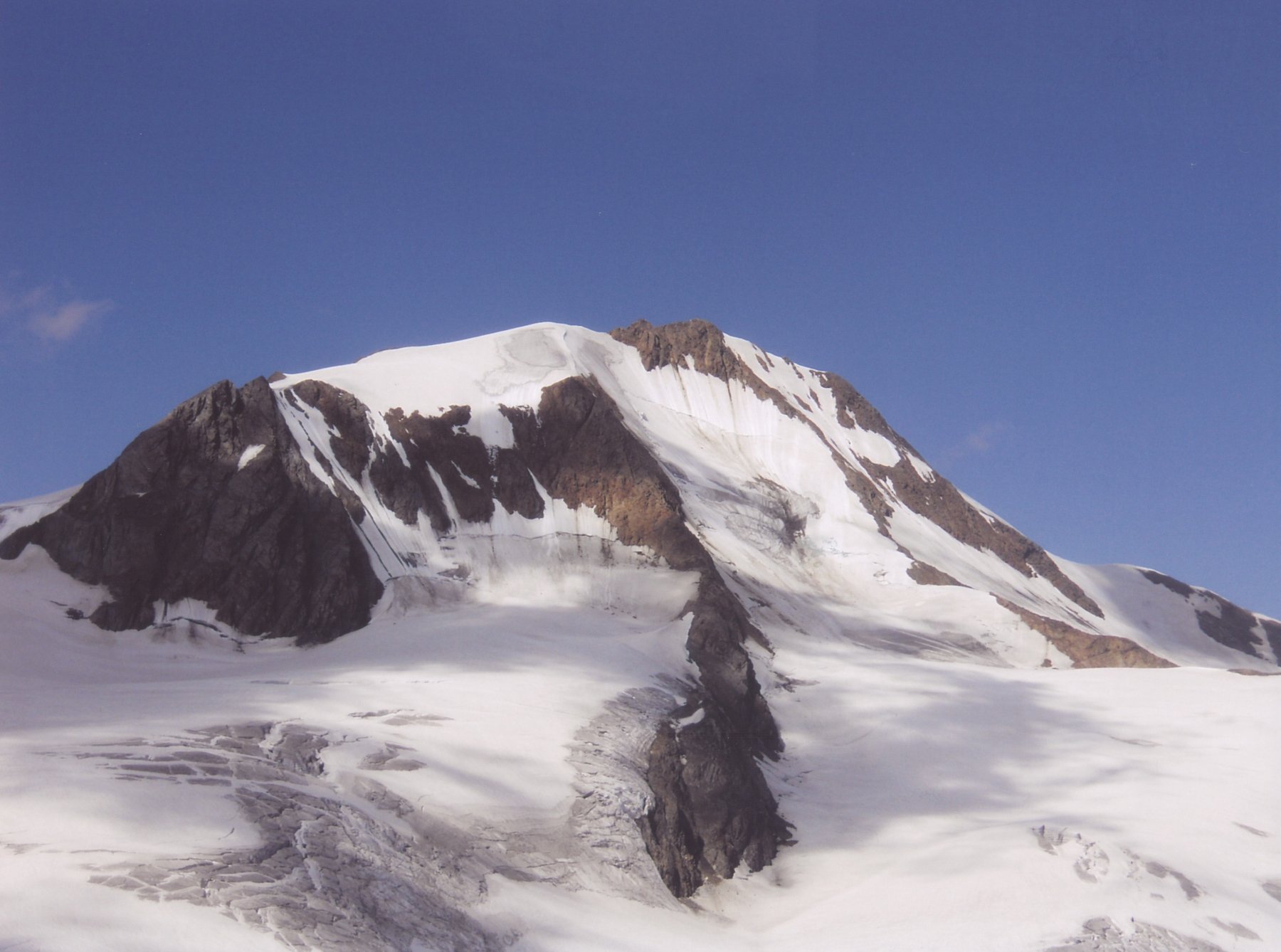Nella mattina di domenica 28 dal rifugio scendiamo di 100 m per riprendere il sentiero che sale a destra (segnavia 5A) e, attraversando una terrazza morenica, arriviamo alla base delle rocce della Cresta del Diavolo, che viene raggiunta dopo un erto pendio su un rialzo roccioso a quota 3170 m. Si prosegue lungo la cresta che fa da confine tra Italia e Austria e, scavalcando su misto alcuni risalti secondari, giungiamo alla Bocchetta delle Frane, modesta forcella all’estremità occidentale della Cresta del Diavolo. Si scende quindi di pochi metri sul ghiacciaio dell’Hintereis, in territorio austriaco e compiendo un ampio giro in direzione della Bocchetta della Vedretta, si percorre il ripido pendio che porta al passo. Giunti al Giogo della Vedretta/Hintereisjoch (3471 m) si piega a destra dove ci attende un erto pendio ghiacciato e quindi la sovrastante cresta sud arrivando all’anticima nevosa della Palla Bianca. Da questa, parte l’ultimo tratto roccioso di 50-60 metri per la vetta della Palla Bianca/Weisskugel (3738 m). Discesa per lo stesso itinerario.